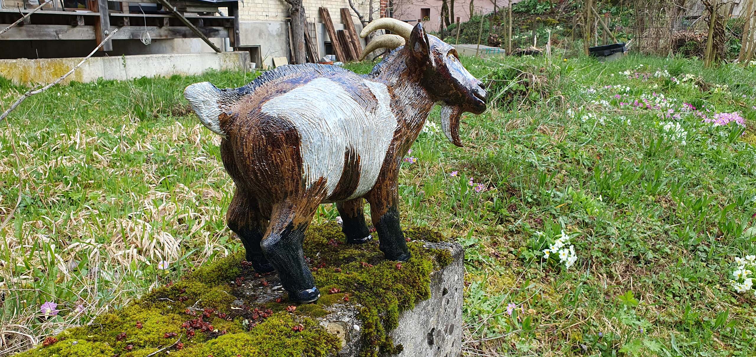 Ziege männlich. Höhe bis Kopf ca. 31cm, Länge über alles ca. 42cm